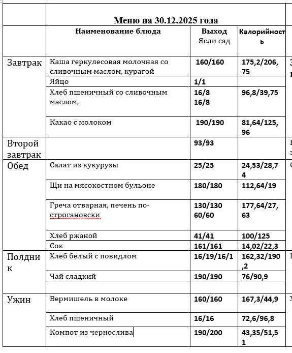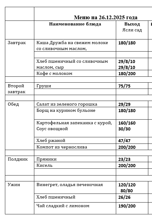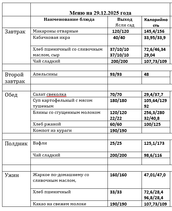 Меню приготавливаемых блюд (основное двухнедельное меню) с 3 до 7 лет