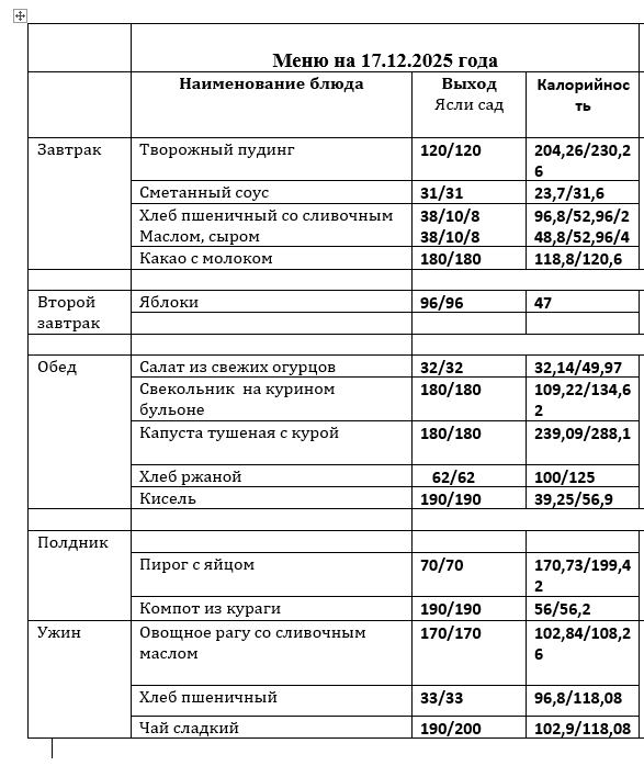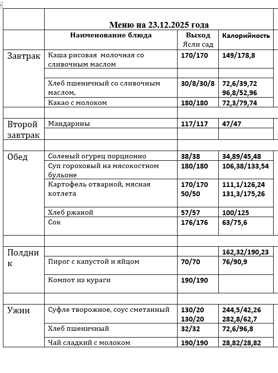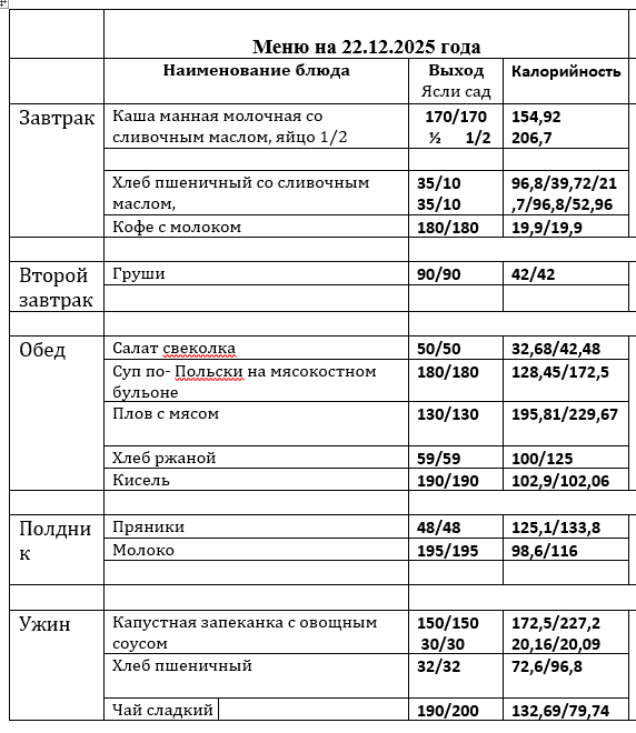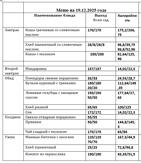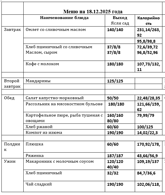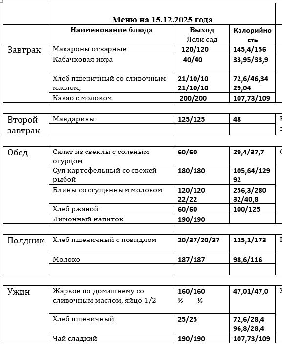 Меню приготавливаемых блюд (основное двухнедельное меню) с 3 до 7 лет