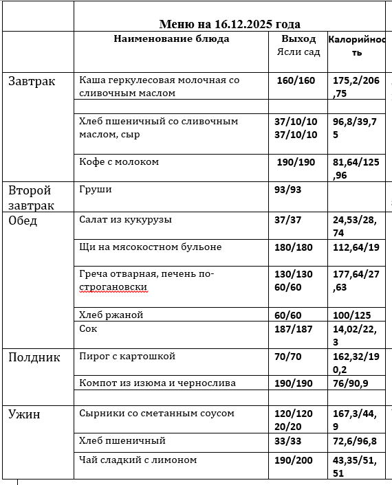 Меню приготавливаемых блюд (основное двухнедельное меню) с1,5-3 лет