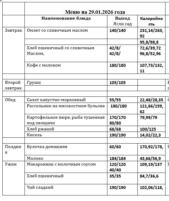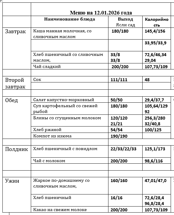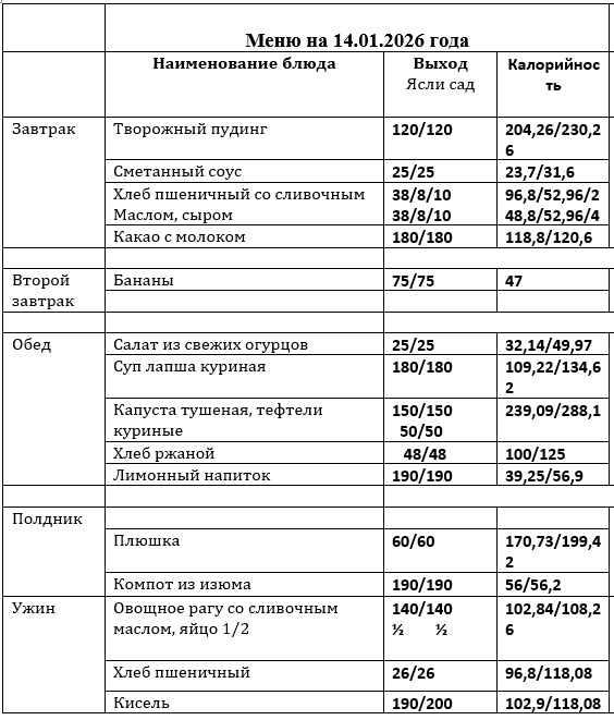 Меню приготавливаемых блюд (основное двухнедельное меню) с 3 до 7 лет